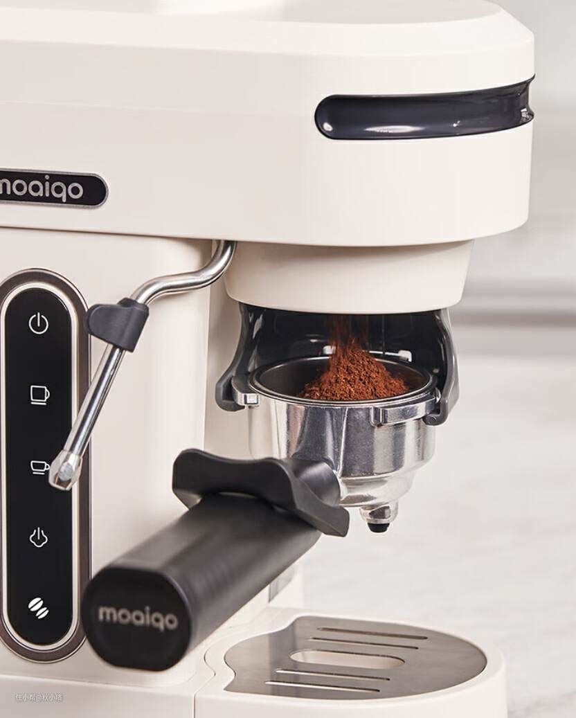 摩巧这款入门级的半自动咖啡机自带磨豆器,15档研磨粗细,可以适配不同产地的咖啡豆。在豆仓里加入咖啡豆,选择研磨档位,就可以一键定量出粉啦,都不需要额外称重咖啡啦,非常方便。