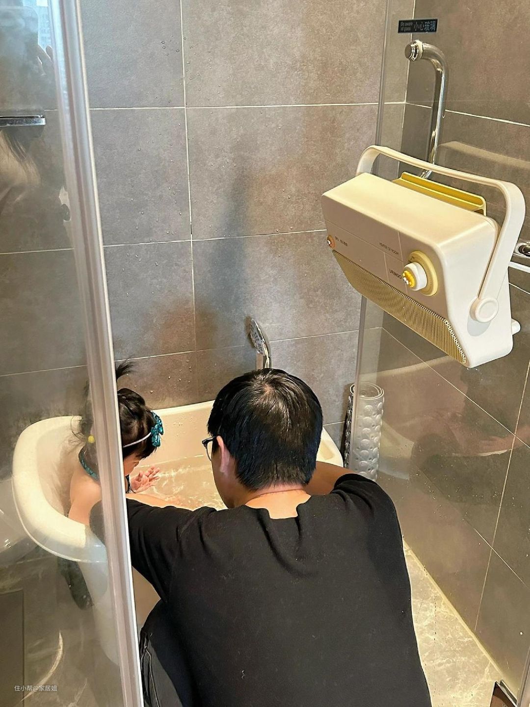 卫生间有浴霸洗澡还是会感觉冷,特别是从淋浴间出来那一瞬间冷得瑟瑟发抖,于是将暖风机挂在浴室墙上,一打开瞬间暖乎乎的,给宝宝洗澡、换衣服、烘干贴身衣服等,都很实用。