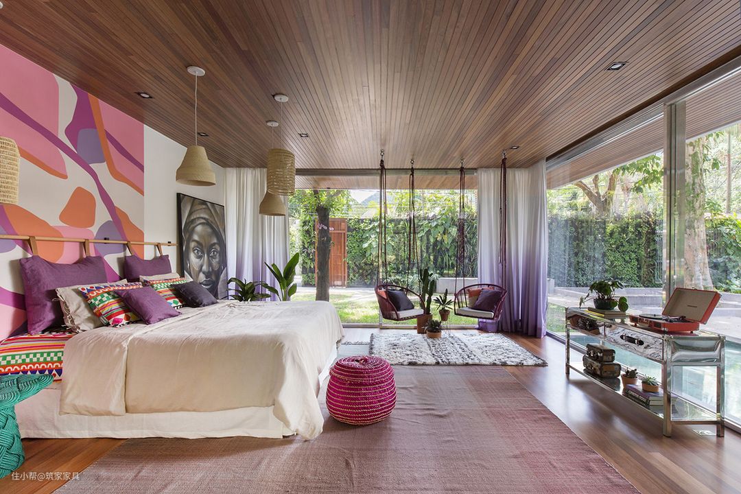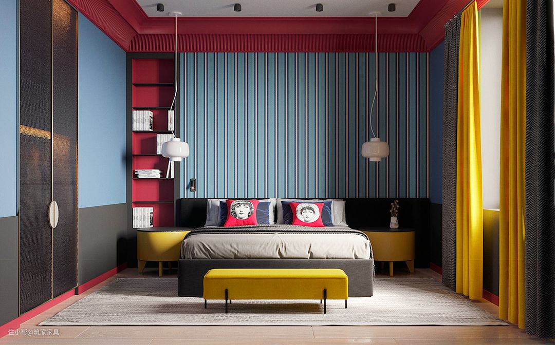 不要退缩。如果您喜欢色彩,那么可以用艺术床头板墙、明亮的散布靠垫、渐变色窗帘和色彩缤纷的篮子将您的卧室装饰推向极致。