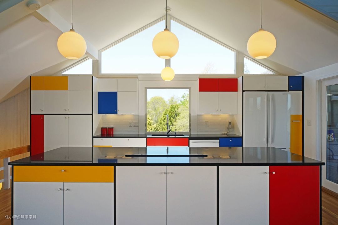 这种受蒙德里安启发的室内设计真正进入了立体主义艺术的领域,分散的色块和突出的黑色轮廓。