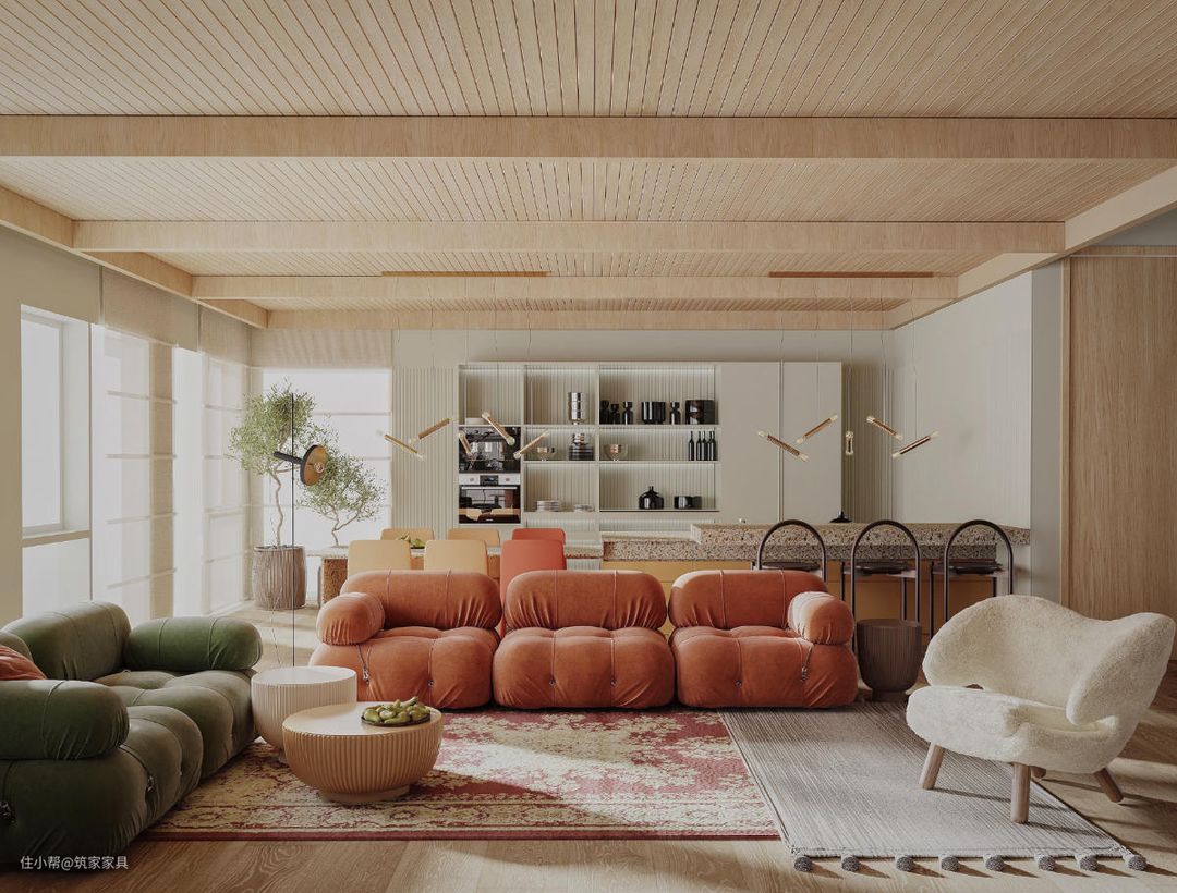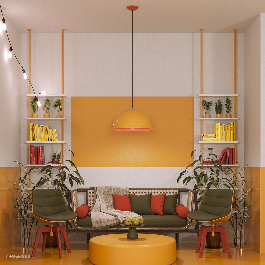 将橙色色调与微妙的绿色植物融为一体,体验充满正能量的温馨宜人的生活空间。