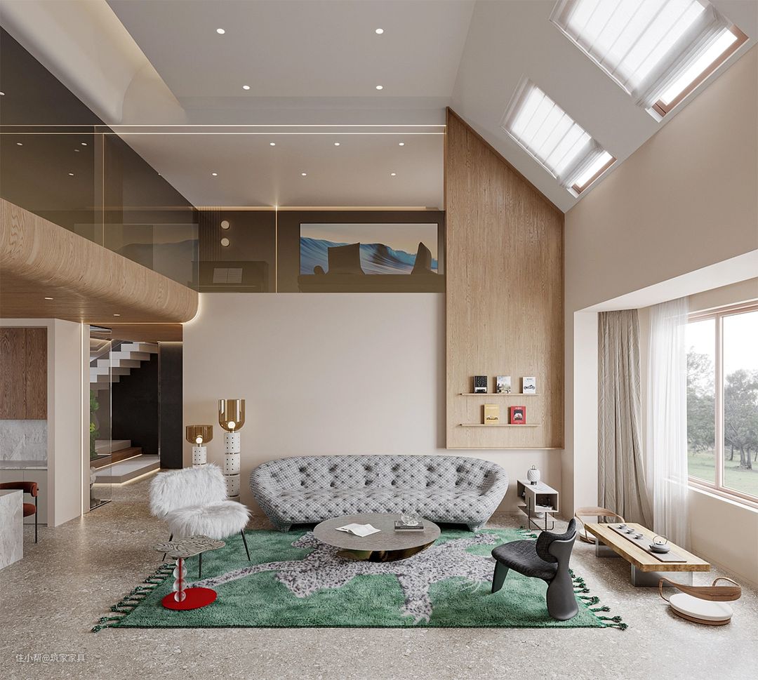 粉色和绿色的生活空间营造出活泼欢快的氛围,促进快乐、创造力和乐观的感觉。