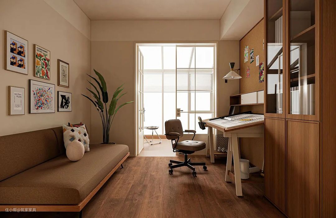 在建筑师的工作室里,一张小沙发是一个舒适的休息区,供人们沉思和喝咖啡休息。