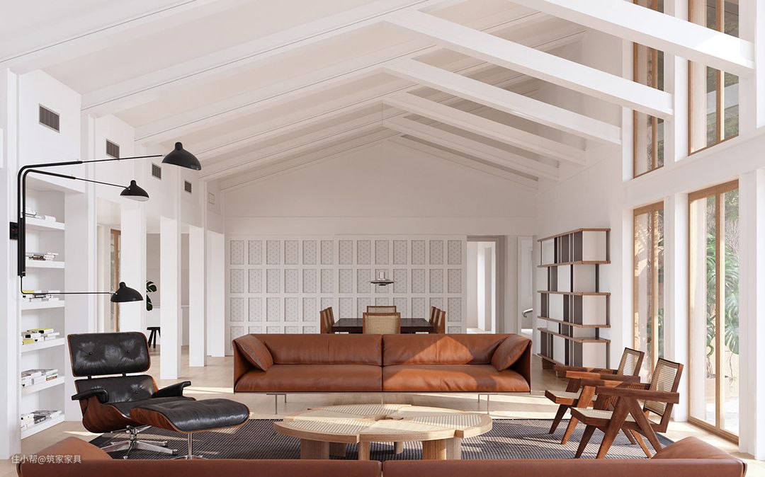 我们的两种风格的第一次结合,充满了 520 平方米的中世纪现代住宅装修室内。该住宅最初由美国西南部两位顶尖建筑师奥尼尔·福特 (O'Neil Ford) 和理查德·科利 (Richard Colley) 于 1970 年代建造。虽然空间进行了重组,但仍保留了其原有的魅力。美国中世纪复古家具与现代家具相结合,布局简洁,和谐一致。中世纪的现代客厅使用木质和棕褐色家具,在全白色的房间内营造出热烈的欢迎氛围。