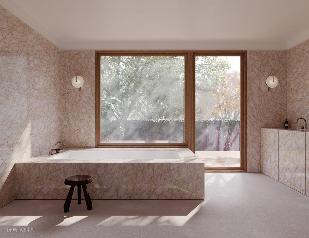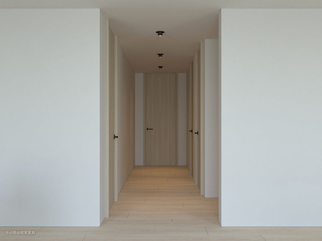 拱形靠背卧室椅子与房间的结构细节相呼应。一盏白色的小落地灯在纯白色的背景下消失了。