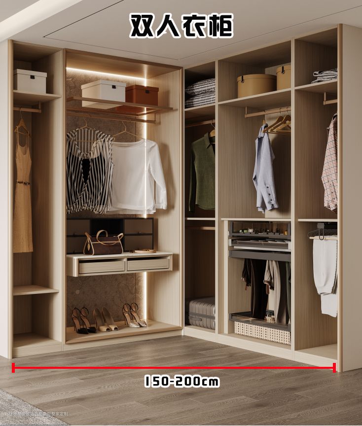 - 如果是夫妻共用的衣柜,宽度至少应在150-200厘米之间,以满足双方的储存需求。