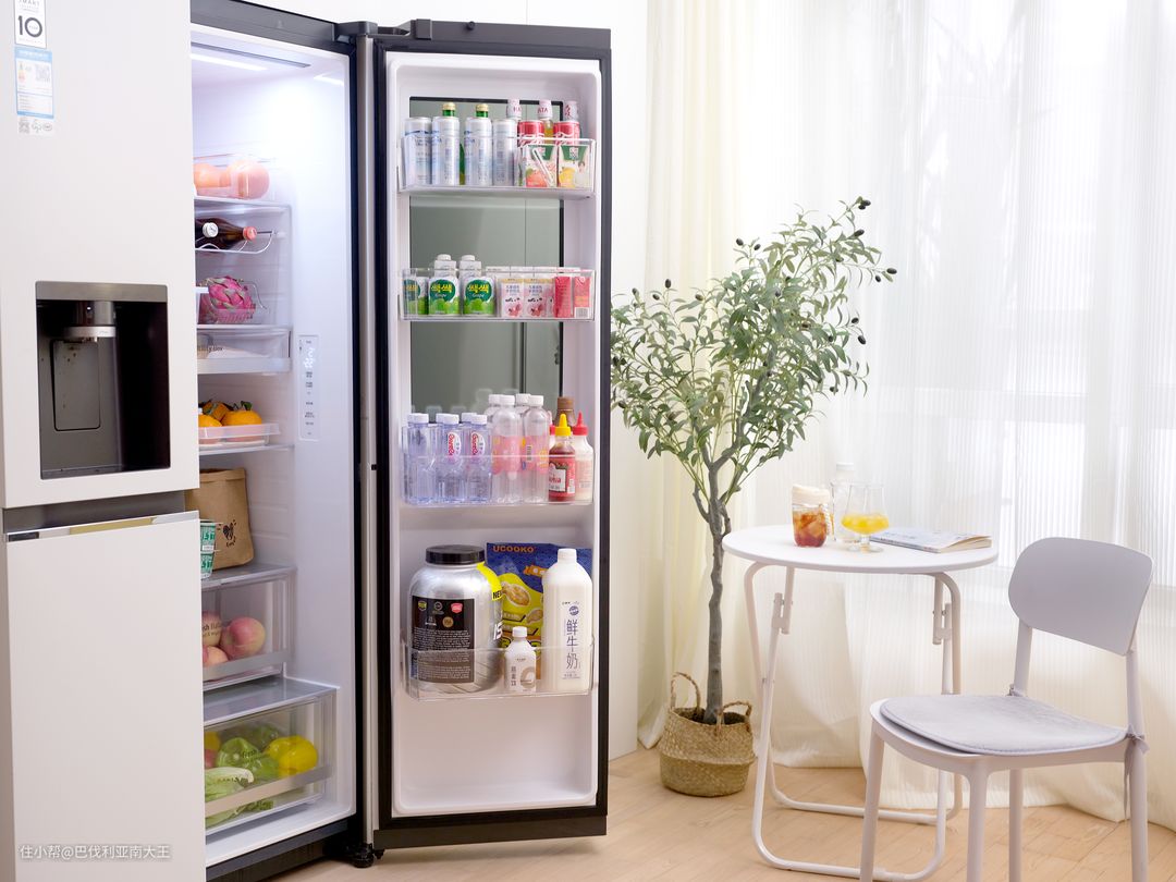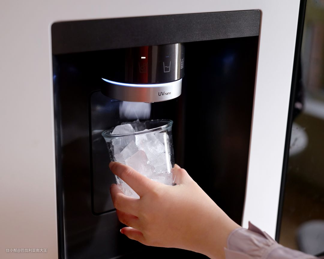 这款LG敲一敲冰箱的门板上自带制冰机,而且采用了门边挂式设计,完全不占用额外的冷冻空间。我平时用它制作冰水、冰块或碎冰,随时享受冰饮,简直不要太方便。
