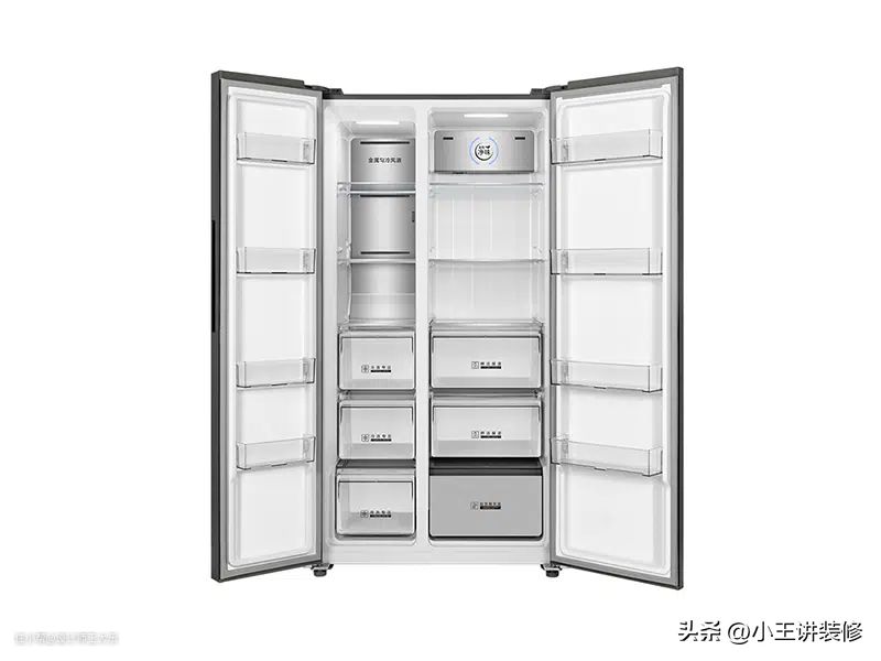 这类冰箱左边是冷冻室,右边做冷藏室,比较双开门,容量是大了,不过每次拿取食材都得将整个门打开,影响保鲜效果且耗电量大。