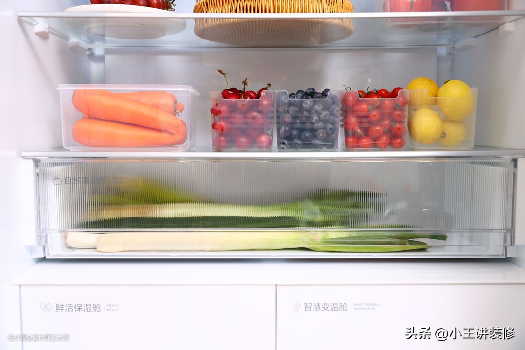 而在冰箱冷藏区部分,法式薄嵌T9也有合理的分区,其中三层隔板可以放饮品,中部全宽的果蔬抽屉,可以用来放芹菜等偏细长的蔬菜,直接整根躺平不用对折,这一点很不错。而在底部还有鲜活保鲜舱方便我们放草莓这类更需要保湿的水果,智慧变温舱则有冰镇、生鲜和母婴三档可以选,我们完全可以按照不同季节需求调整,比如夏天多用冰镇放西瓜就很赞。