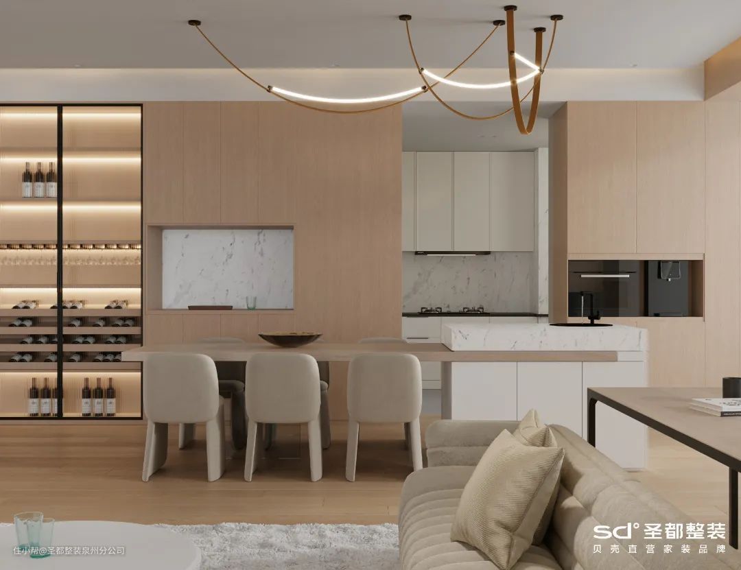 如果家里有个大横厅,可以规划成多功能区,并以吧台作为软隔断,实现颜值与功能的双重升级。