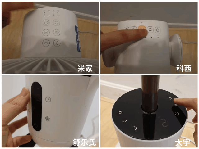 这七款空气循环扇中,只有摩飞是单一的遥控操作方式,其他6款空气循环扇都是基本的按键+遥控双重搭配。不过在机身按键上,只有格力是顶部按键的设计,更照顾到老人群体的腰椎状况,无需弯腰也可以操作循环扇,很贴心~ 而遥控面板上,虽然功能多,按键就会多,不过过多的按键的遥控器,确实看起来就让人头疼。无论是哪种群体的使用者,追求的更多都是简便高效的操作。而这7款空气循环扇中,除了科西遥控器按键更为复杂之外,其他六款循环扇都做的十分精简易操作。