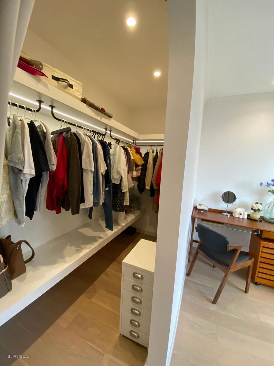 用石膏板隔断一个区域,内部只需要几块板子拼凑在一起,就有一个这样的衣帽间。
