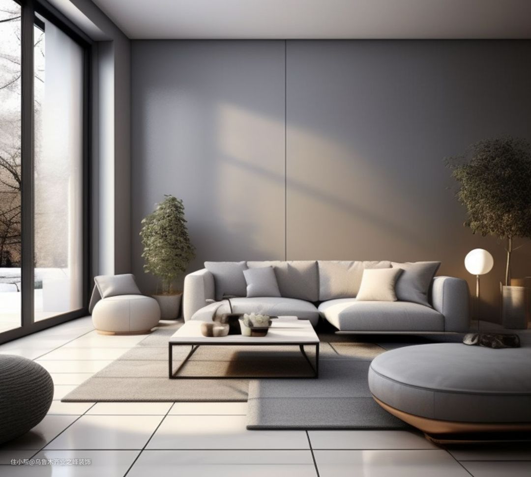- 家具的搭配:我们可以选择一些色彩鲜艳的家具,如红色的沙发、蓝色的椅子等,与灰色瓷砖形成鲜明的对比,增加空间的活力。
