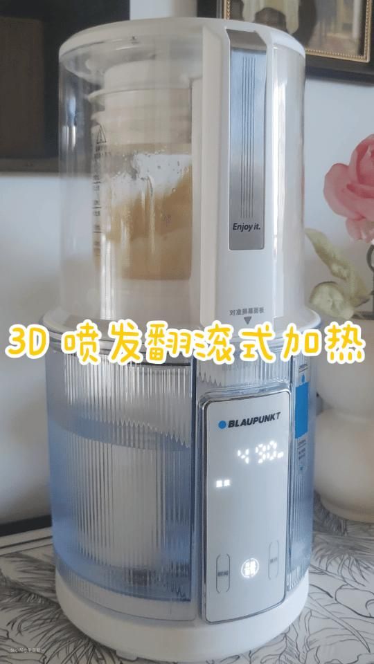 这款破壁机也是真的快!只要10秒钟就能喷出高温蒸汽,15分钟内就能做出浓香的豆浆。它里面有个强力的1200W蒸汽发生器,通过底部的双排口喷出热水和蒸汽,瞬间充满整个机器。这样能快速软化黄豆,15分钟就能搞定一杯香浓豆浆。比起普通的破壁机,它节省了将近一半的时间。