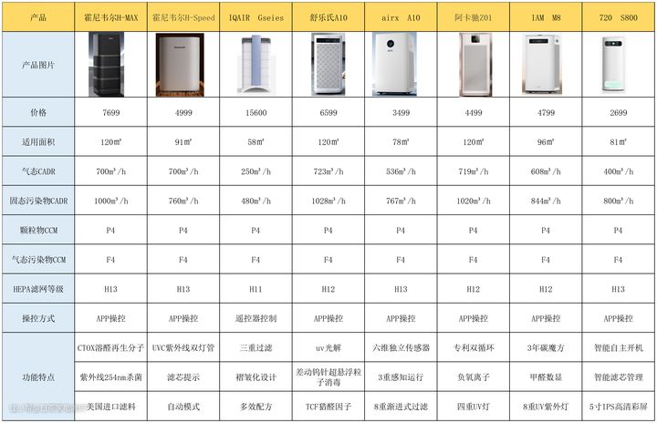 大家好,我是 @白茶。一名有点懂空气净化器的家电测评博主,也是一枚鼻炎患者~ 所以,每每换季的时候,我总是会为空气中的漂浮物而头疼~真的让鼻子变得更不舒服。因此,除了日常会戴口罩之外,回到家中开上空气净化器也是必备环节。对于市面上的热门空气净化器,我基本都有测评过。 今天给大家带来八款空气净化器对比测评,分别是霍尼韦尔HMAX、霍尼韦尔H-Speed、IQAIR Gseies、舒乐氏A10、airx A10、阿卡驰Z01、IAM M8、720 S800,通过综合的测评,帮助大家选择一款适合自己的空气净化器!