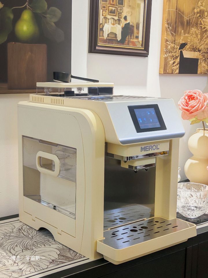 超高颜值:美宜侬ME-717全自动咖啡机采用复古风造型,还有乳白、米黄、尊贵黑三种机身颜色可选,搭配黑色触控显示屏,与各种家装风格都可以完美搭配。
