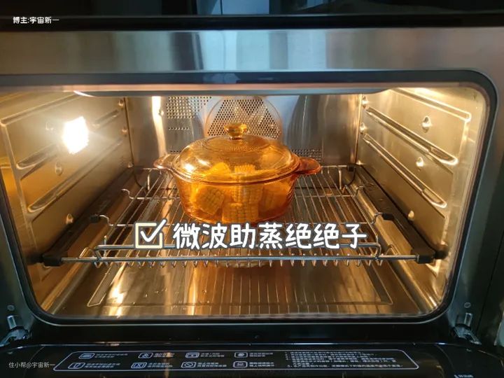 我用微波助蒸的玉米真的好嫩,将食材放入内腔,选择微波助蒸功能,20分钟后出炉。玉米香软可口,表面没有过干的现象,口感非常香甜。