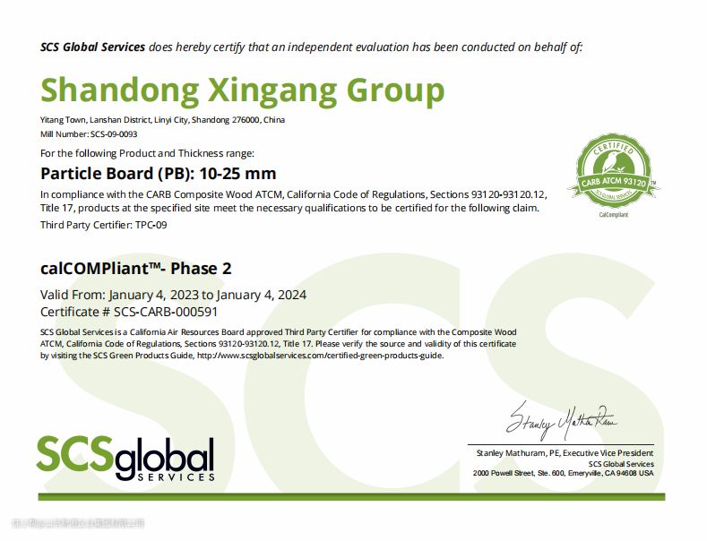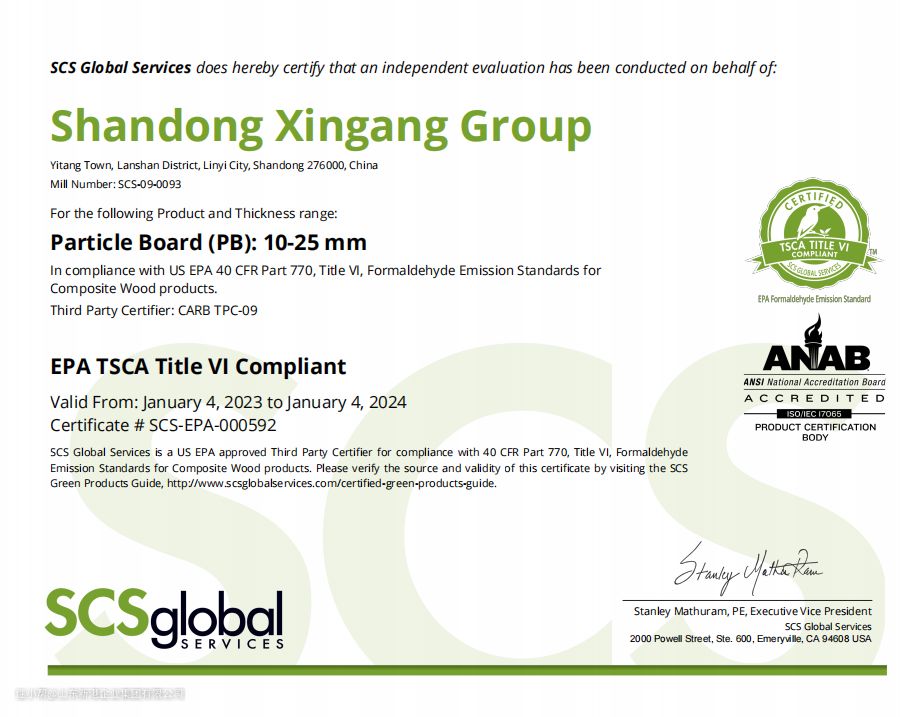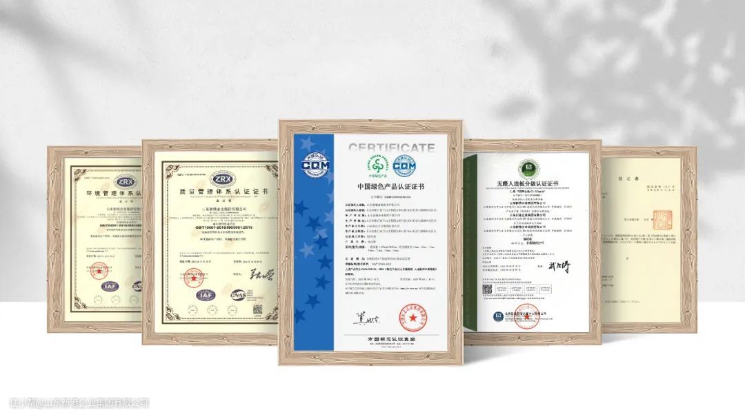 新港集团刨花板系列产品,以出色的产品实力荣获“中国绿色产品认证证书”、“无醛人造板分级认证证书”、“质量管理体系认证证书”、“环境管理体系认证证书”、“美国carb认证”、“美国epa认证”、“日本F☆☆☆☆认证”等多项国内外权威机构认证。
