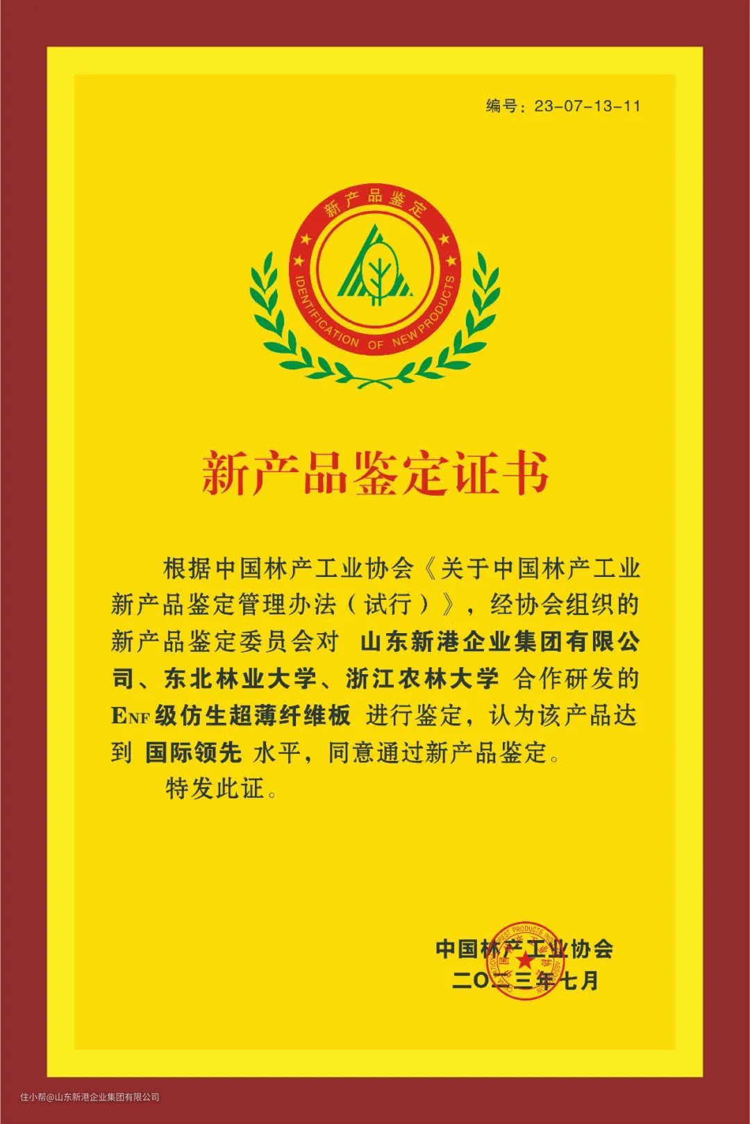 2023年7月13日,经中国林产工业协会组织鉴定,新港ENF级仿生超薄纤维板被评定为国际领先水平,以科技力与产品力赋能家居未来。