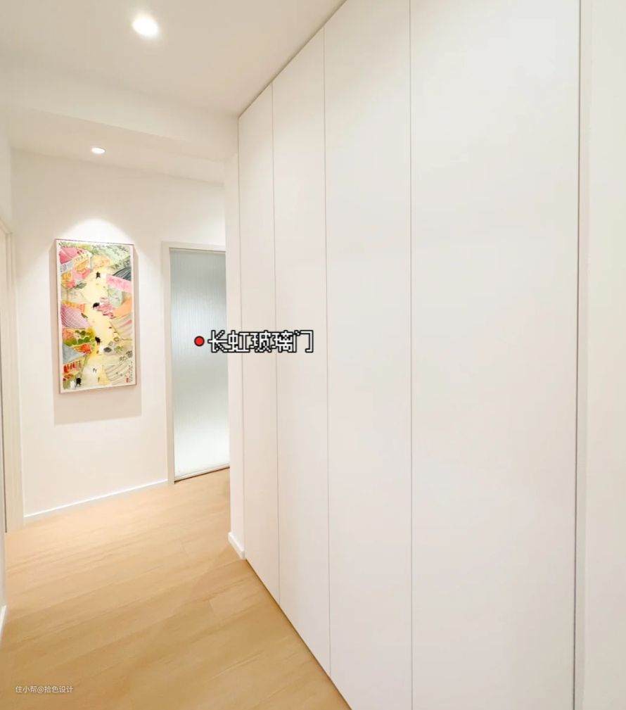 网友@王阿琦了:家里有一个非常鸡肋的长过道,为了将其利用起来,使其变得不再那么单调,就利用部分次卧室的面积,设计了整面墙的嵌入式衣柜。