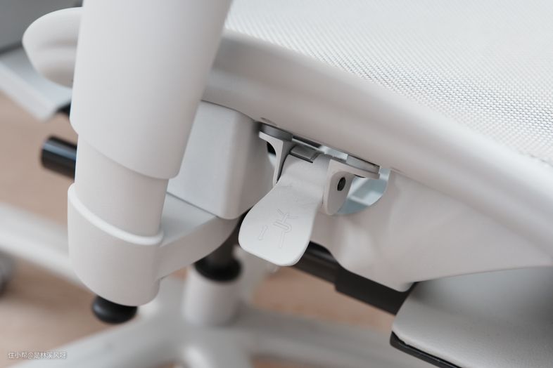 坐垫深度则可以实现5cm前后调节,长腿欧巴也可以放心的入手,可以给到足够的空间感,对提体型的包容度更高,坐深调节同样设置在座椅右侧,为机械调节,往后拨动这个黑色拨杆就行,十分方便。