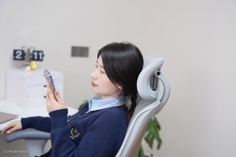 最佳的体验感在你躺下的时候最明显,承托性很强,而且头部左右摆动时,它也能时刻的给你hold住,躺着刷个手机还是很惬意的。当然,如果你是自费出资给自己换座椅,那用它在办公室午休,绝对很舒服。