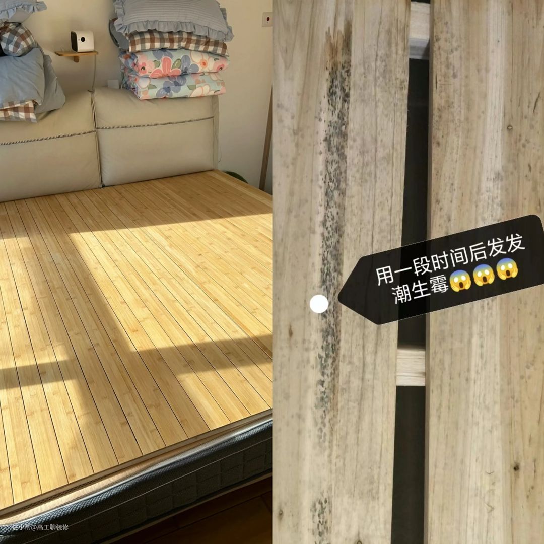 如果你有我上面描述的同样想法的话,那么我还是奉劝你大脑清醒一下吧,因为当你体验过整块床板的床后,你就会发现你床上面的床垫也跟着遭殃,主要是这种整块床板的不透气,透气性非常差,散热也差,居住时间长了你就会发现床垫很容易受潮发霉。严重后真的会影响到人的身体健康。