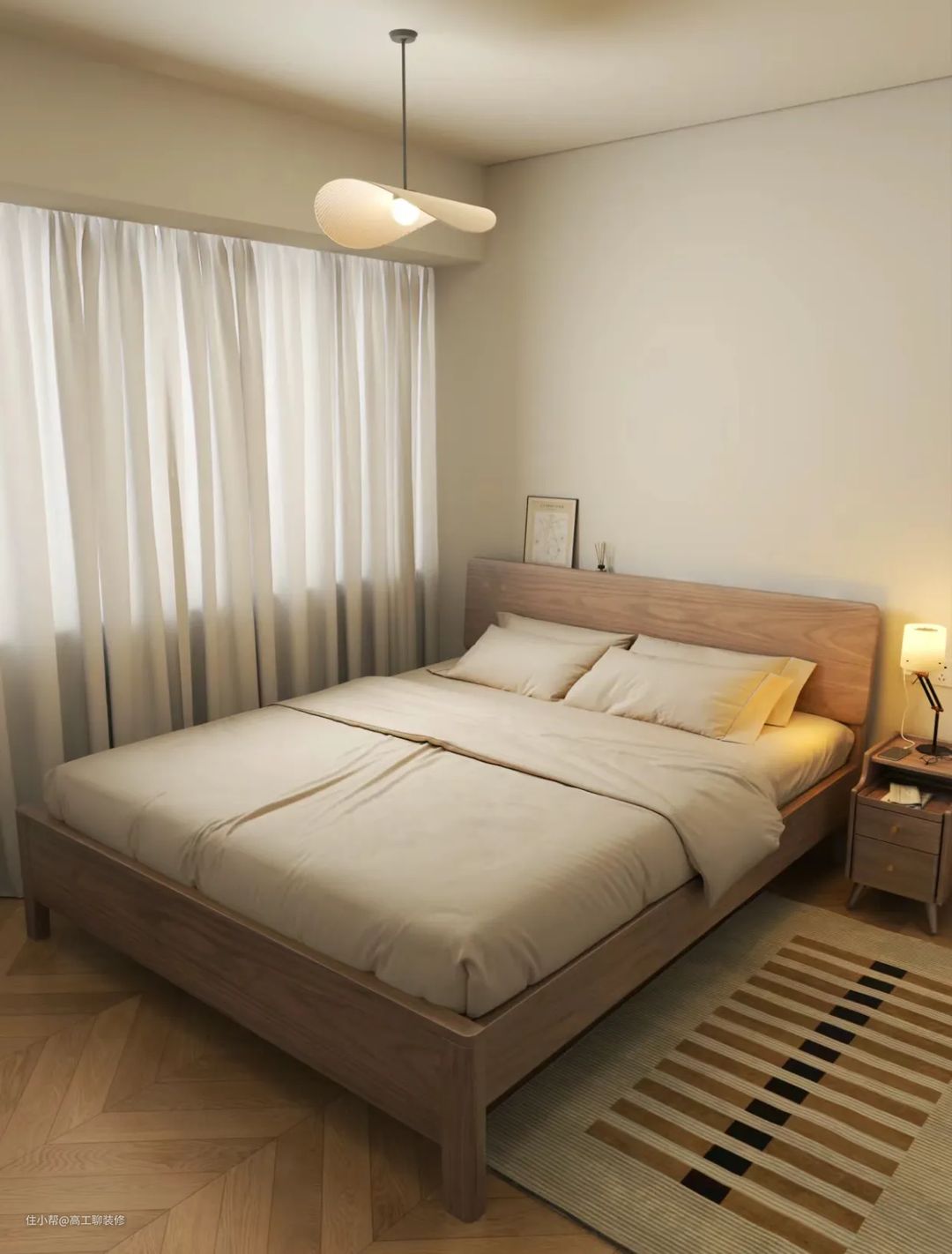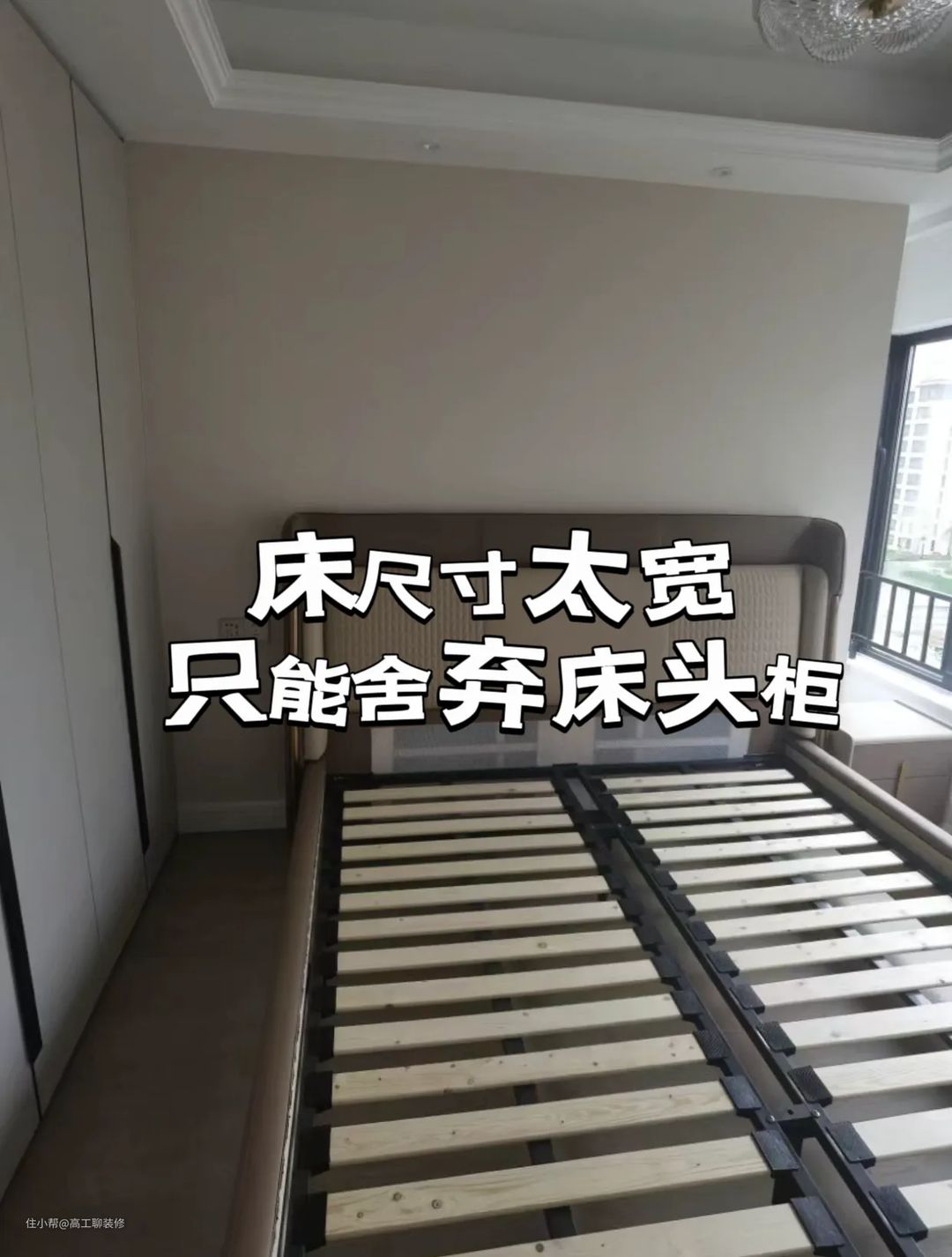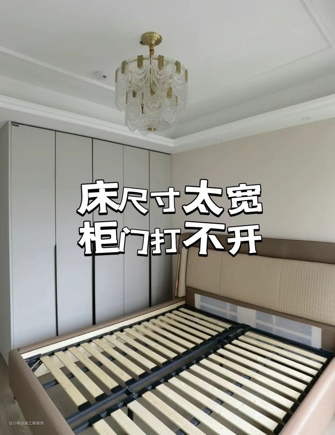 如果你是一名普通老百姓居住着比较常见的小三居室,那么高工奉劝你,尺寸太宽的床还是要谨慎考虑,不然真的会影响摆放床头柜,甚至会影响到衣柜门的开合,严重的话过道都要侧着身子走,本来在有限的空间里却没有合理的规划,一味地选购尺寸太宽的床后,就真的把空间缩小了。