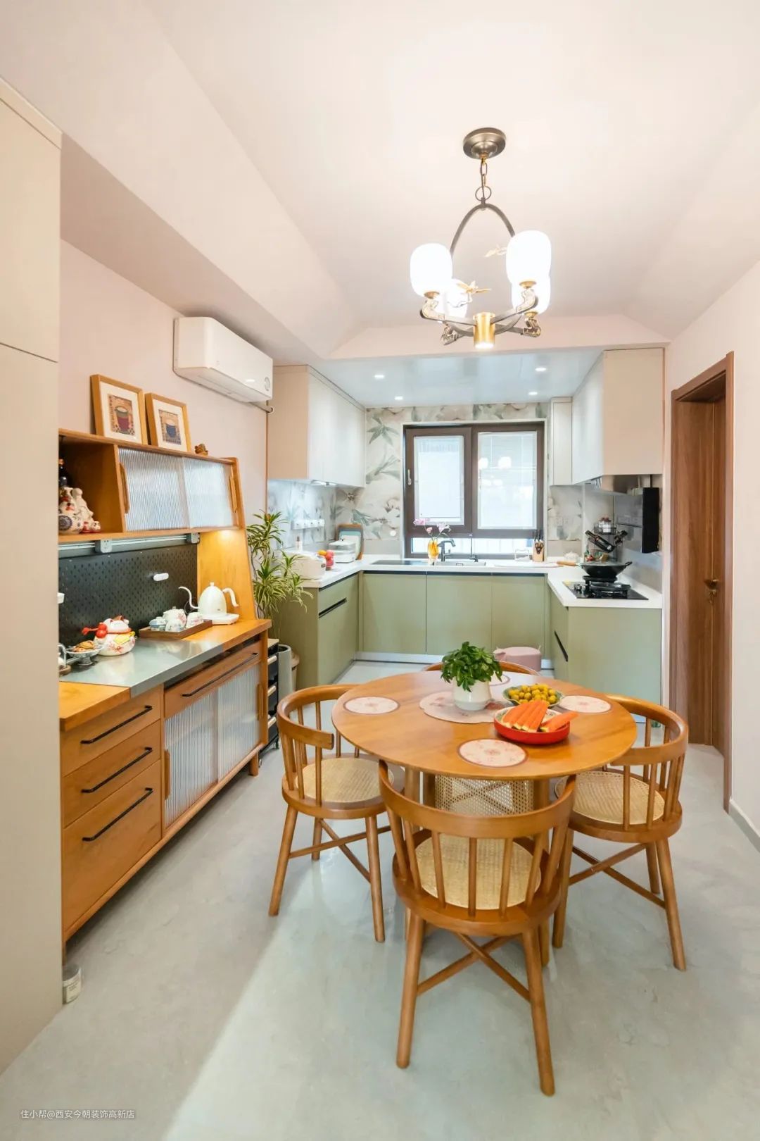 由新建墙体一侧所延展出的新空间与原餐厅相结合,重新规划为餐厨一体化空间。