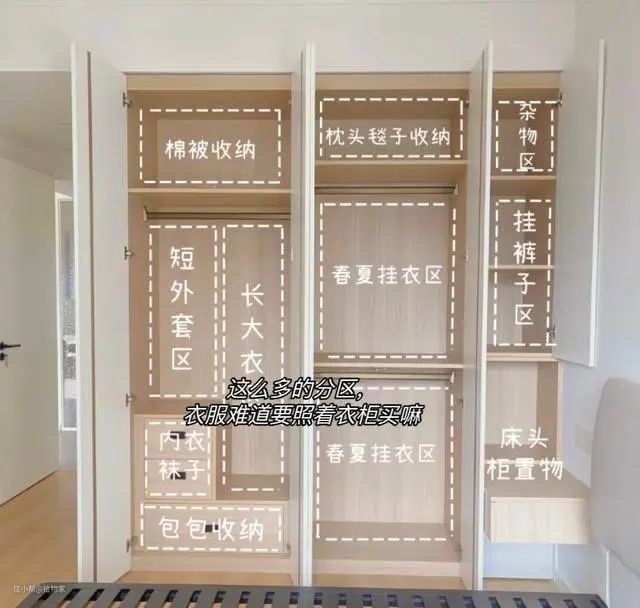 没有装修过的屋主,都会把柜子分区弄得明明白白的,甚至细分到衣服,总以为分得越细越实用。真正使用起来,并不是这样的。