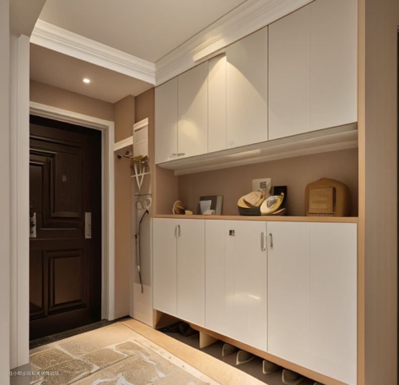 鞋柜高度应该是墙面高度的三分之一,或户主身高的一半为宜,宜矮不宜高。