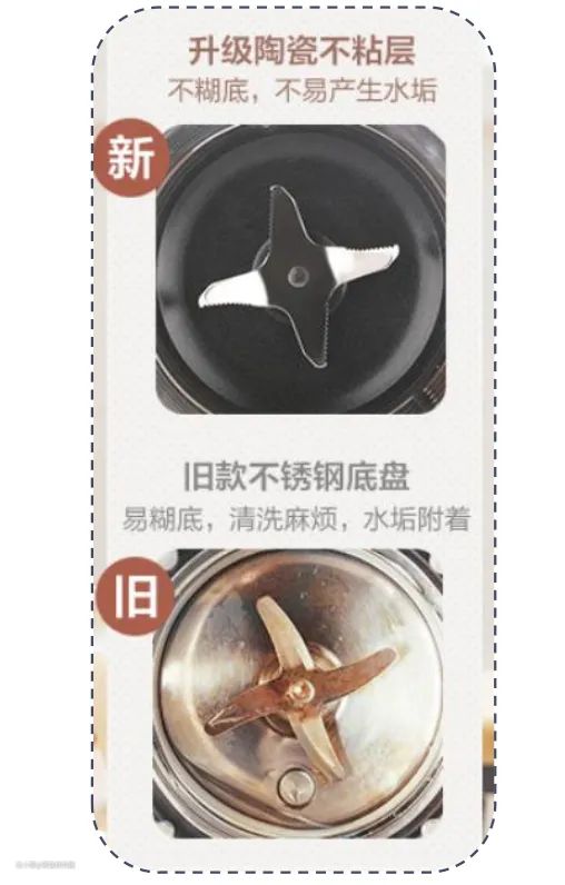 在选择上,我们可以选择多种刀片叠加的机器,不要过度追求锋利,破壁机靠的是转速而不是刀片本身的锋利度。