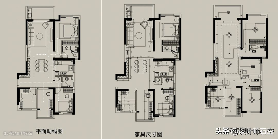 当然设计师要交付给业主的图纸远不止上面这些,主要包括空间布局图、效果图、施工图、主材/软装等选品清单、整体预算清单等五大类,具体图纸数量不定,但至少十来份。