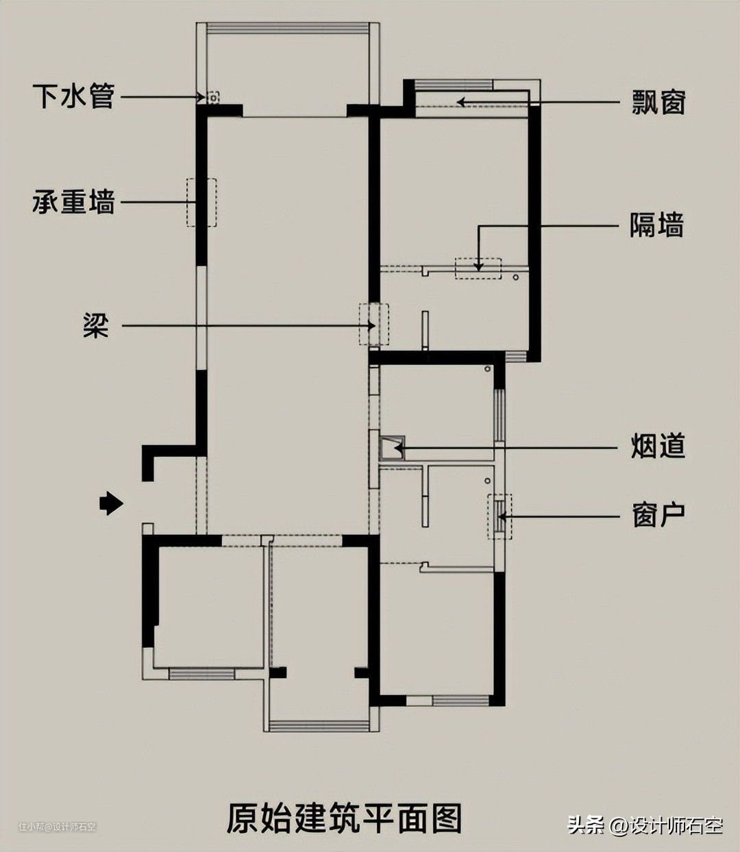 承重墙:大家都知道承重墙不能拆,但户型图里带实体黑色的不一定都是承重墙;