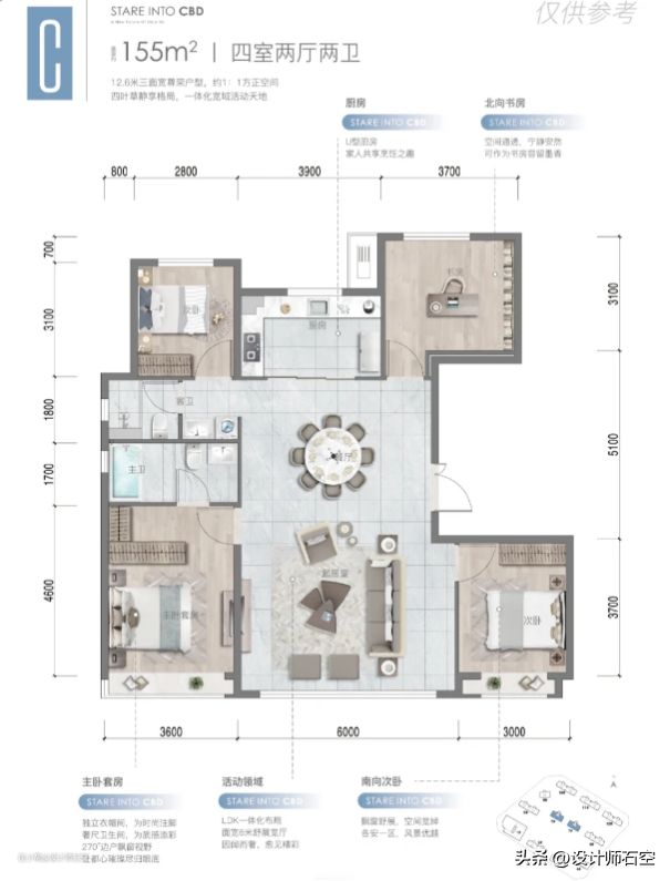 但如果不考虑外部环境,我觉得“面积+层高” 才是绝大部分户型的核心。