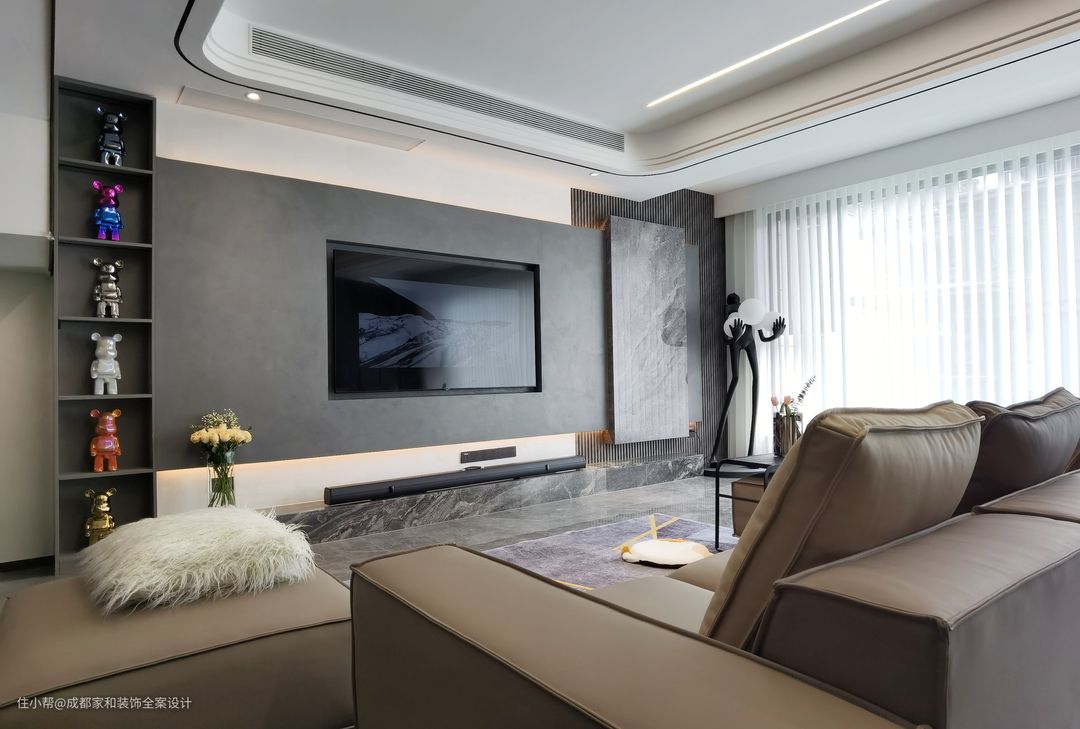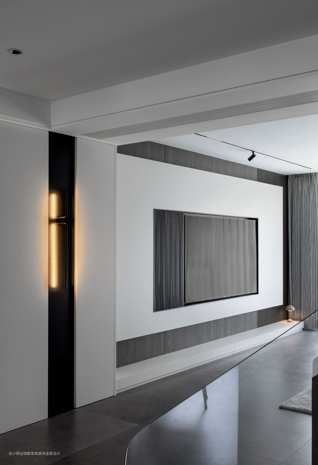 4、电视墙造型可以加入灯带,色温3500K左右,能够营造出温馨舒适的氛围。