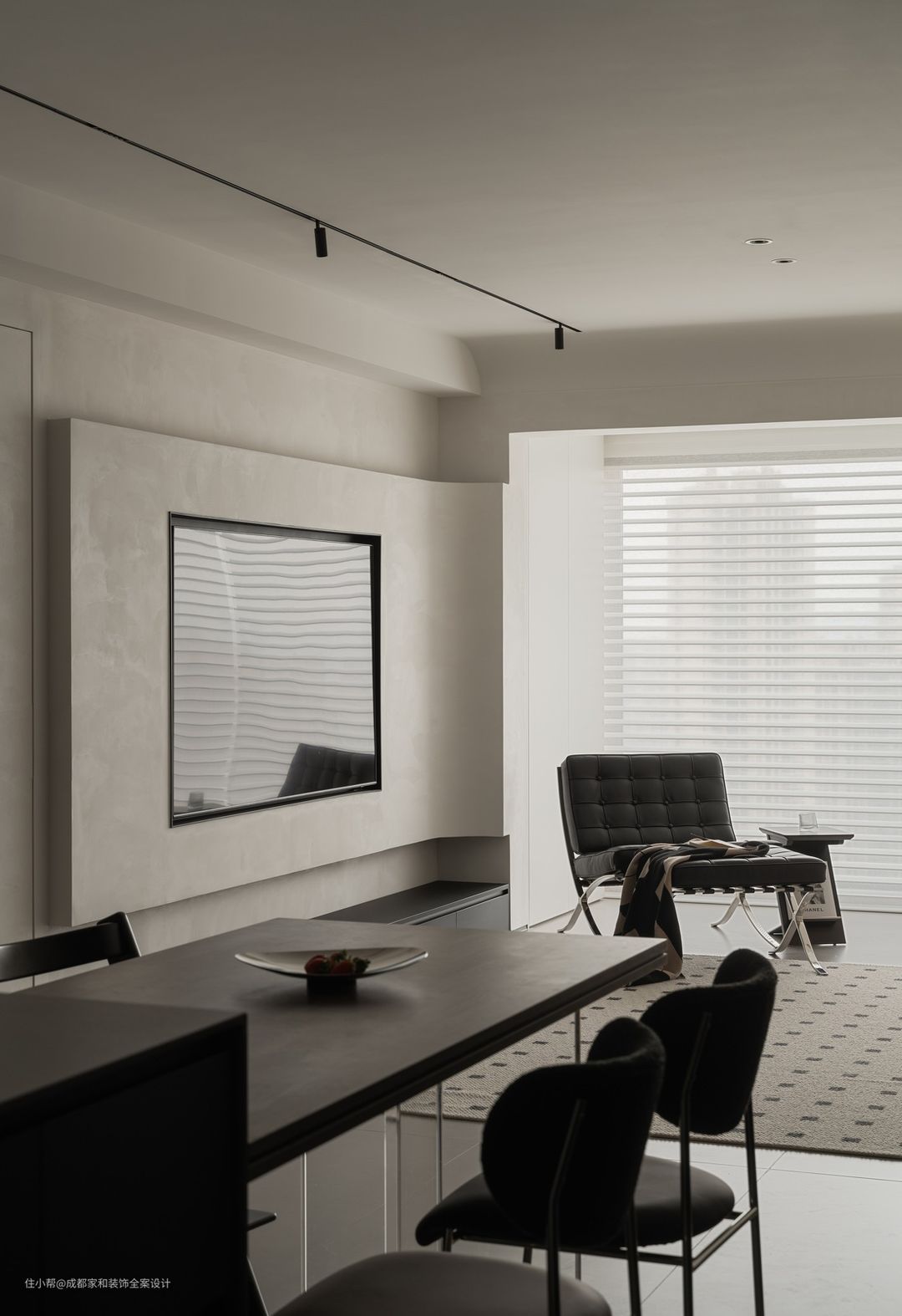 虽然电视是“嵌入”电视墙,但并不是直接在墙上挖洞做嵌入,而是利用凸出墙面的造型,将电视嵌入其中。常见的做法是用石膏板做出立体造型,中间留出放电视的空间,一般有两种方式,一是直接用石膏板做成内凹的造型,二是定制成品不锈钢壁龛。电视下方或者底部做地台,满足基础的收纳需求。