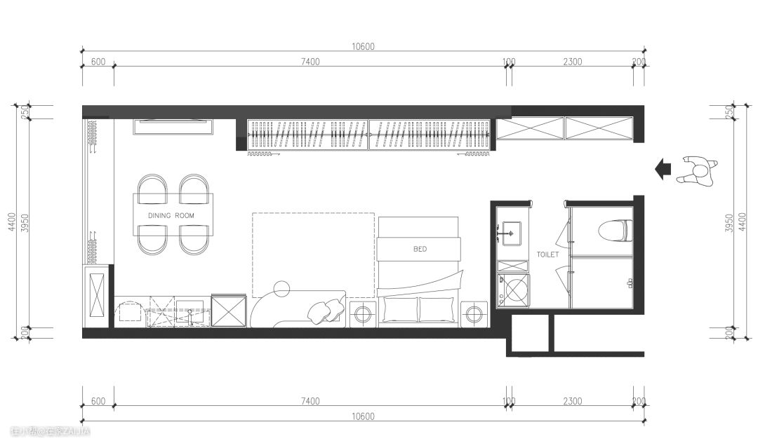 ○ 在有限的空间里细分功能区,拥有独立衣帽间
