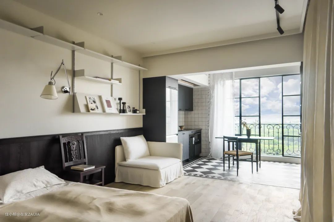在这十几平米的空间里,不但保证了客厅、卧室、衣帽间的舒适度和功能需求,大牌正品灯具带来了高级的质感和体验,复古的老家具则充满怀旧气息。