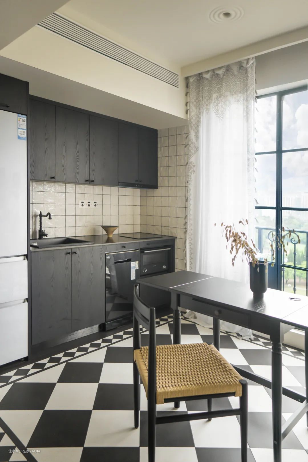 靠窗的精致餐厨区