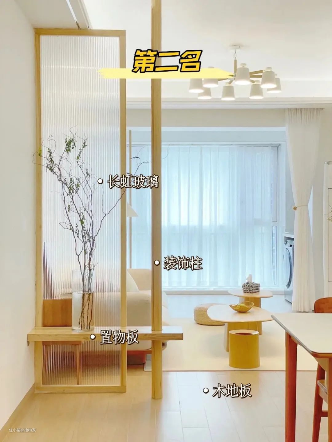 玻璃加双卡座设计,简直太绝了,两边都可以坐人,一边充当吃饭的餐椅,另一边充当换鞋凳。加上玻璃隔断,不会影响采光,又增加私密性。
