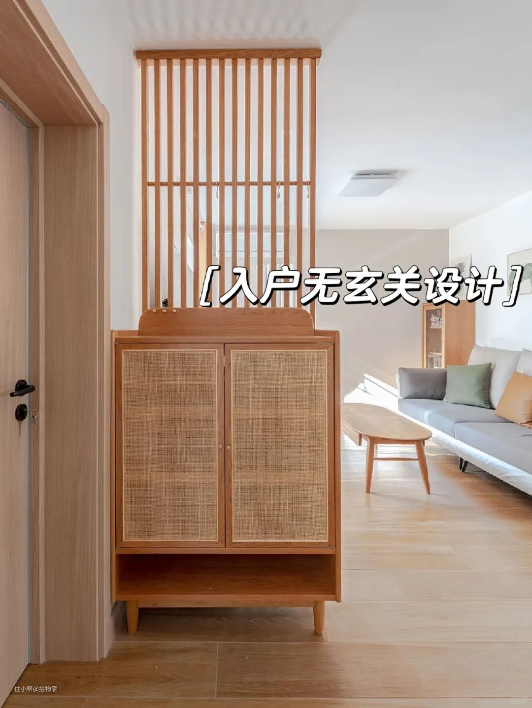 木质藤编温润质感,推门那刻既为归家之人带来若隐若现之美,又为整个家带来一丝温馨感。