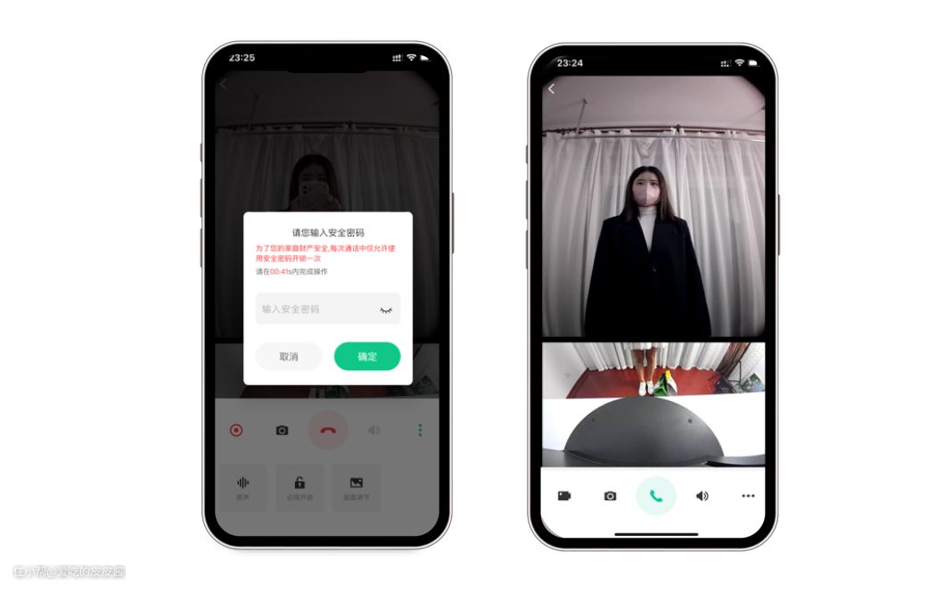 直接在门前双向对讲,支持变声功能,通过视通通话,同时利用门下摄像头查收快递、外卖。好友到访也能及时知道,根本不用动,直接用app远程开门就行。