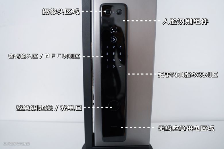 对于门内的开锁方式,华为支持触摸背面的感应开锁区,从而进行门的开合,在锁内显示屏的下方,设有电子反锁键,可一键反锁,多重安全保护,同时也设有应急开锁旋钮。