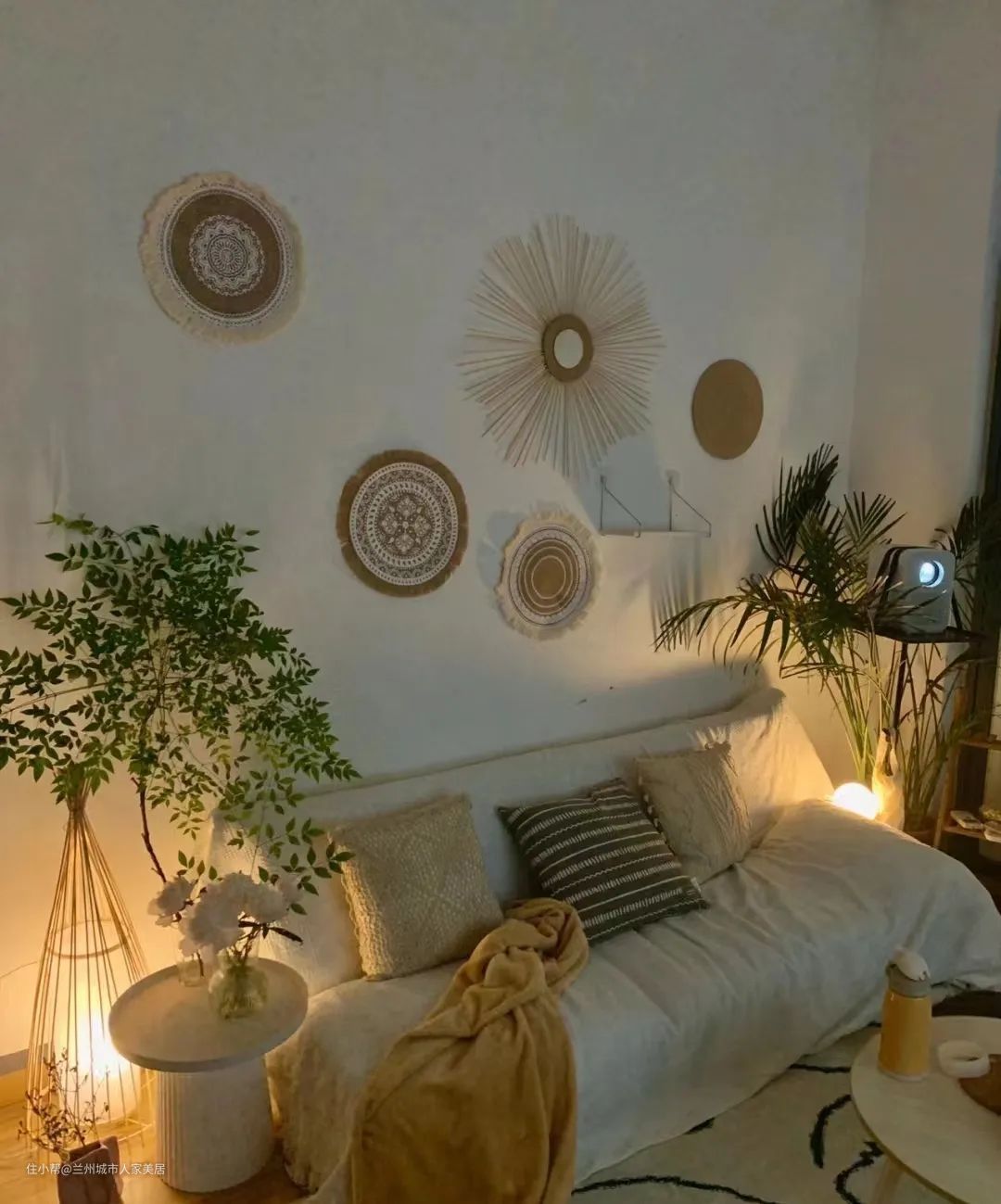 如果室内面积比较狭小的话,建议贴紧墙面的装饰材料,水性漆、墙布、墙纸等