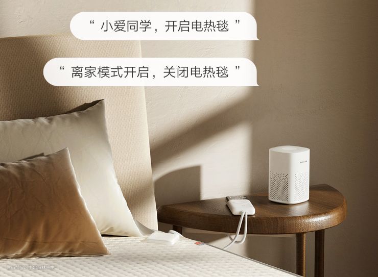 如何家里卧室有一个小爱同学,可以使用语音来控制电热毯的开启和调节,是不是非常的方便。当然手头有手机也可以实现操作。