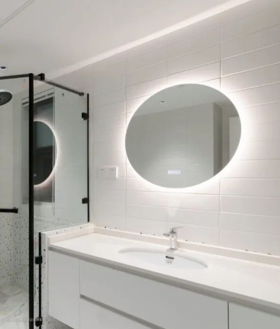 错误的隔断做法包括上图所示的,虽然也进行了局部隔断,但它没有考虑浴柜与玻璃之间的死角空间,这种做法属于没有生活经验的表现。