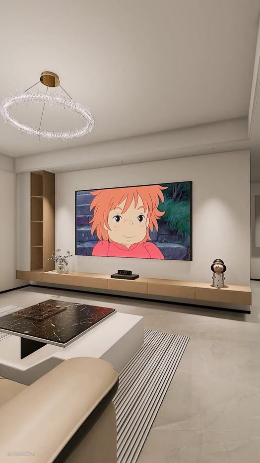 也不做网红电视墙,而是直接通刷乳胶漆,采用立柜搭配悬空电视柜的组合,简单又耐看,然后安装一个高清大屏电视,在家纵享观影时光。