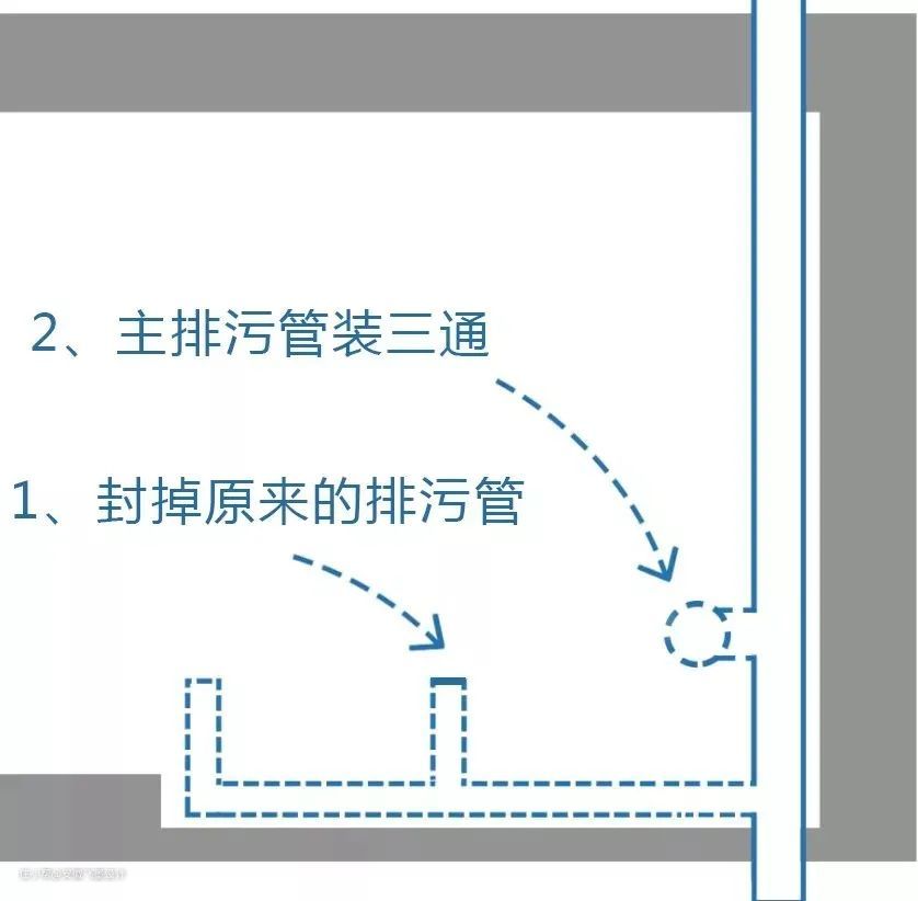 这种方式最简单,就是将原来的排污管封掉,直接在主排污管上装三通。