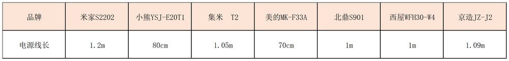 美的只有70cm,有点短了,我家差点没插到,其他几款都没问题。米家1.2米非常够用了,随便放在哪里都行。